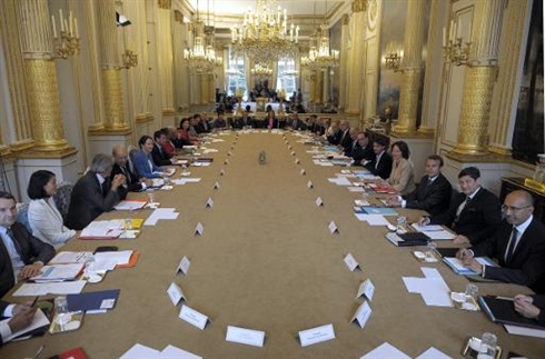 | Le premier conseil des ministres du gouvernement Valls II, le 27 août à l'Elysée |