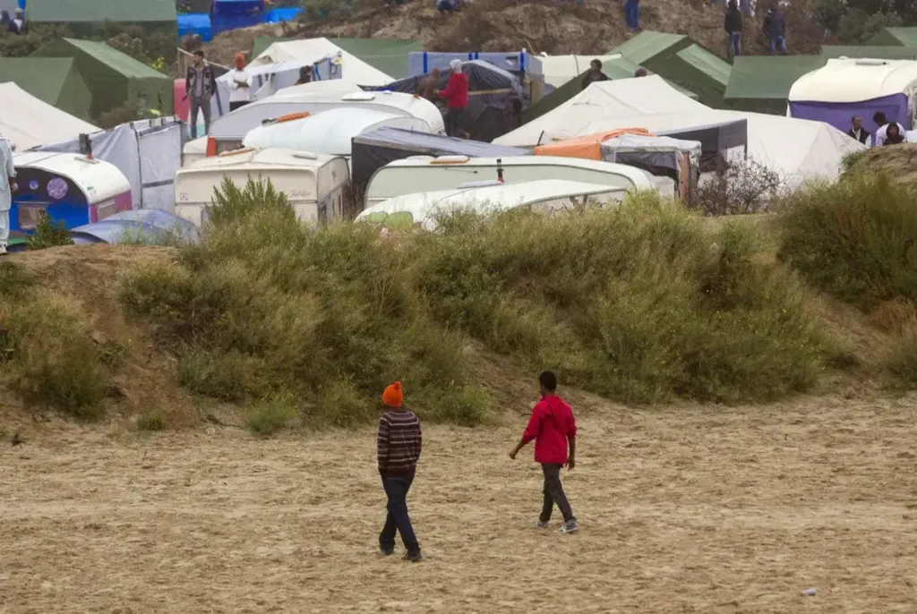 | L'ancien camp de migrants de la "jungle" de Calais, photographié en 2016, avant son démantèlement (image d'illustration). |