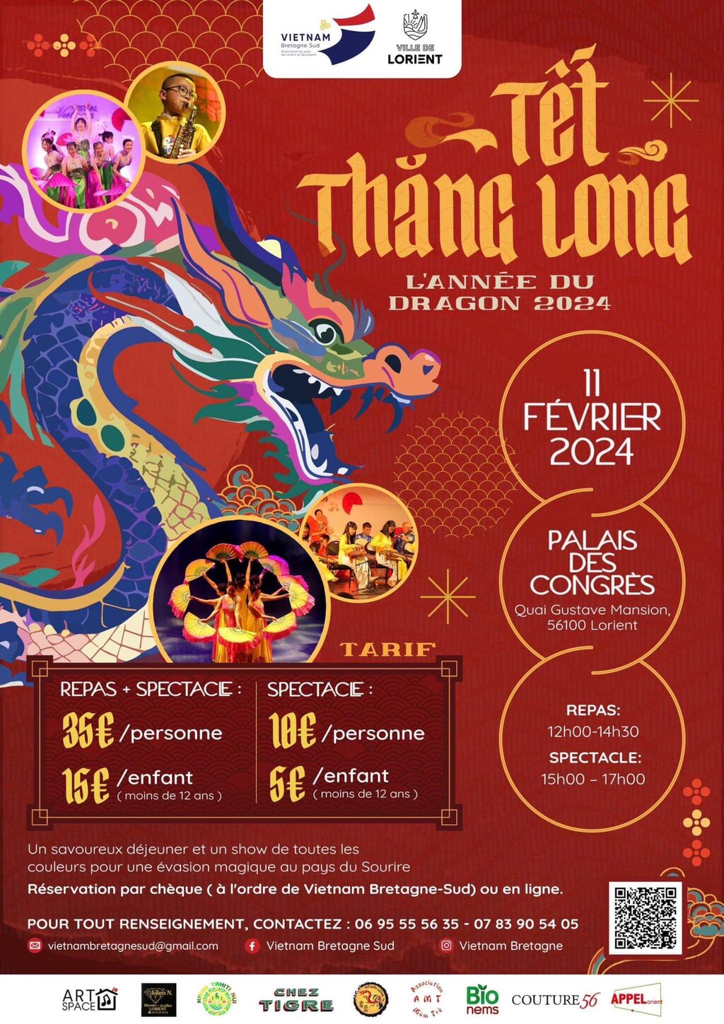 En parallèle, il y aura également des stands vendant des gâteaux du Têt, des stands de décorations et de souvenirs, un stand de calligraphie du Vietnam ainsi qu’un atelier créatif pour fabriquer des objets vietnamiens. L’association s'attend à accueillir 700 spectateurs. Il est possible de réserver des billets en ligne sur https://www.helloasso.com/associations/vietnam-bretagne-sud/evenements/l-annee-du-dragon-tet-thang-long.