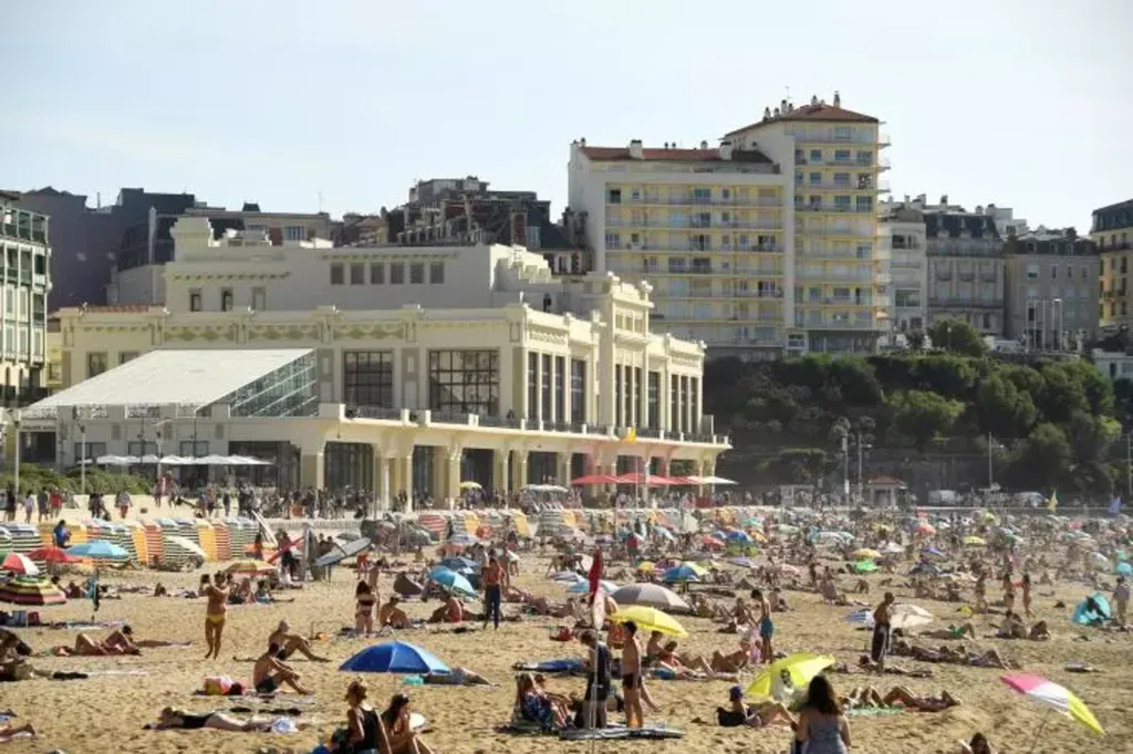 | La Grande plage envahie d'estivants et le casino de Biarritz, le 22 août 2019. |