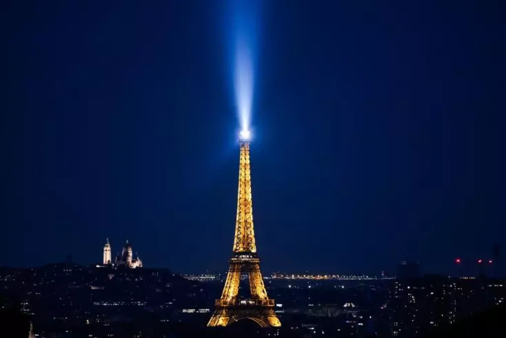 | La Tour Eiffel et la basilique du Sacré-Cœur illuminées à Paris le 11 juin. |
