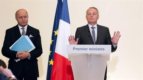 | Le ministre français des Affaires étrangères Laurent Fabius (gauche) et le Premier ministre Jean-Marc Arnault annoncent la ratification prochaine du traité européen, le 19 septembre |