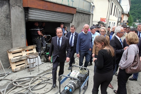 "L'État est là", a déclaré le président socialiste François Hollande, qui a passé une partie de l'après-midi du 20 juin à discuter avec les élus et les habitants dans les régions inondées. L'état de catastrophe sera reconnu "avant la fin de la semaine prochaine" pour "tous les territoires" frappés par les crues, a ajouté le ministre de l'Intérieur, Manuel Valls.