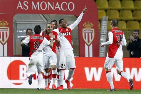 | L'attaquant de Monaco, Anthony Martial (No23) félicité par ses coéquipiers après un but marqué contre Saint-Étienne, à Monaco le 3 avril. |