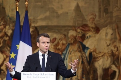 | Emmanuel Macron s'adresse à la presse diplomatique à l'Élysée, le 4 janvier. |