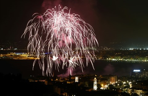 | Feu d'artifice au dessus de la baie des Anges à Nice, le 14 juillet 2014. |