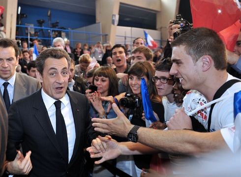 | Le président candidat Nicolas Sarkozy (1er plan, gauche), lors de sa campagne présidentielle, le 30 avril à Avignon (France). Photo : AFP/VNA/CVN |