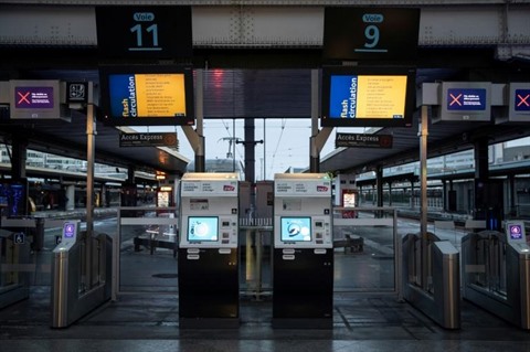 | Des écrans d'information à la gare de Lyon, à Paris le 8 décembre. |