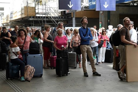 | Les voyageurs patientent dans les halls de la gare Montparnasse à Paris, le 28 juillet. |