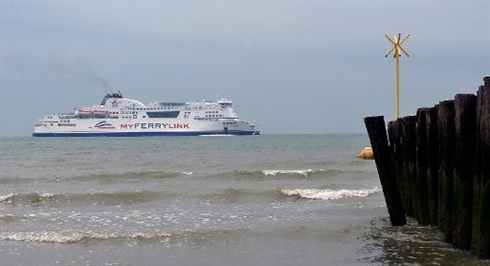 | Un ferry de la compagnie britannique MyFerryLink Seaways quittant le port de Calais, dans le Nord de la France, pour se rendre en Angleterre, le 20 juillet. |