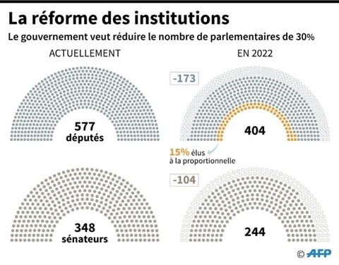 À l'inverse, LR a dénoncé "une lourde erreur" menaçant la "stabilité" des institutions "héritées du général de Gaulle". Autre chiffre clef : moins 30% de parlementaires. Cela aboutira à 244 élus au Sénat, 404 à l'Assemblée, dont 60 à la proportionnelle.