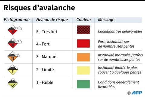 Dans les Alpes du nord, le risque d'avalanches, lié à des chutes de neige suivies de pluies tout aussi abondantes ayant alourdi le manteau, était jeudi fort à maximal par endroits, alors que les stations de ski sont bondées pour les vacances scolaires.
