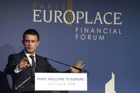 | Le Premier ministre Manuel Valls lors des rencontres financières "Paris Europlace", le 6 juillet dans la capitale française. |