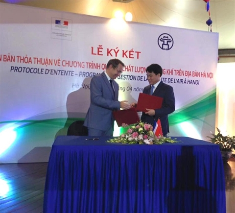 | Le protocole d’entente du programme de gestion de la qualité de l'air à Hanoi a été signé le 8 avril par l’ambassadeur français |