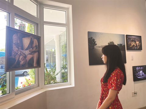 | L'exposition de photos "Le Mékong, à hauteur d'hommes" de l'artiste Lâm Duc Hiên organisée à l'Institut de Huê, lors du Festival de Huê 2022. |