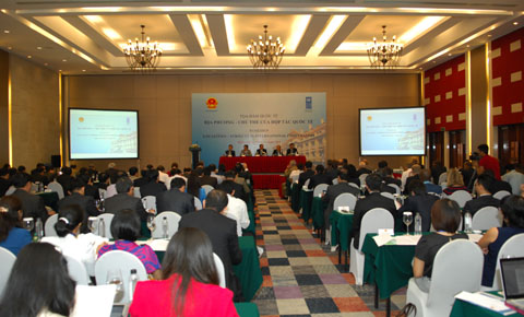 | Colloque international intitulé «Les localités - Sujets de la coopération internationale», le 13 août à Hanoi. Photo : Minh Hanh/CVN |