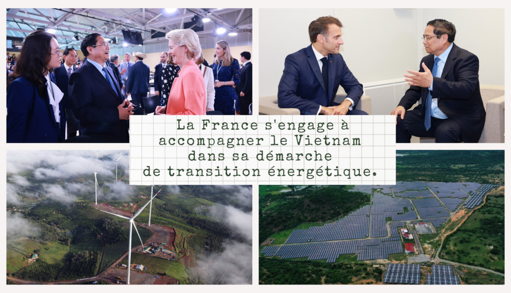 La question de l'accompagnement dans la transition énergétique est "au cœur du partenariat stratégique global" et a été très importante lors des échanges de la visite du président Macron au Vietnam. Le chef de l’État français a notamment eu une réunion avec les acteurs vietnamiens politiques et économiques en charge de ces questions, centrées sur le développement du programme nucléaire vietnamien, mais pas seulement. Des entreprises françaises comme EDF, Air Liquide et Hydrogène de France, entre autres, étaient présentes avec des solutions technologiques et la volonté d'investir aux côtés de partenaires vietnamiens.