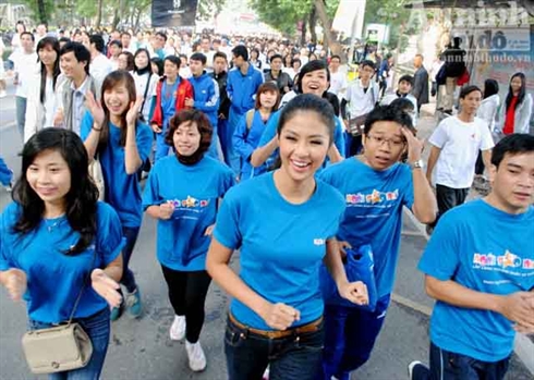 | Près de 150 volontaires internationaux et vietnamiens de France Volontaires ont participé à la course à pied en 2011 pour les enfants. |