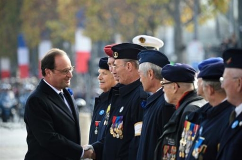 | François Hollande salue des anciens combattants le 11 novembre à Paris |