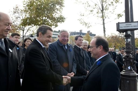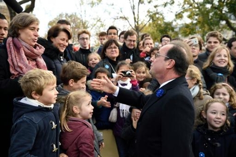 | Hollande s'offre un bain de foule autour de la place de l'Étoile le 11 novembre à Paris. |