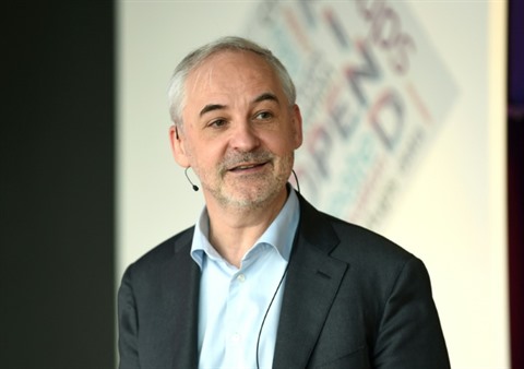 | Laurent Mignon, président sur le départ de Natixis, lors d'une conférence de presse de présentation des résultats annuels de son groupe le 19 février 2015. |