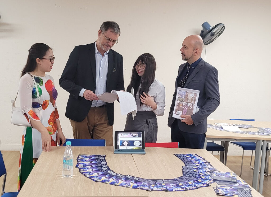 Un moment phare a été la présentation d'une bande dessinée Webtoon Notre Nuit Étoilée, projet étudiant soutenu par l'ambassade de France. La bande dessinée retrace l'histoire de Tiên, une lycéenne qui a toujours eu du mal à apprendre le français pour répondre aux attentes de sa famille. Rien n’aurait changé si elle n’avait pas rencontré Minh, un lycéen passionné par le français et la musique. Il lui montre que la langue qui lui a donné tant de maux de tête peut être aussi agréable qu’intéressante, ouvrant de nombreuses opportunités pour les jeunes de sa génération à la recherche d'un avenir brillant. Lors de leur participation à la cérémonie de présentation de Notre Nuit Étoilée, les visiteurs ont pu non seulement s'immerger dans l'ambiance festive, mais également découvrir en avant-première cette bande dessinée dans l'exposition Webtoon. Ils ont également pu prendre des photos avec les personnages et échanger avec le groupe d'auteurs.