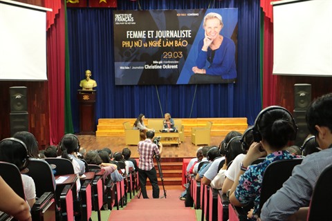 Présentes à la conférence, plusieurs femmes journalistes vietnamiennes lui ont posé des questions sur le métier, notamment les limites de publication des articles estimés «chauds, actuels ou sensibles».