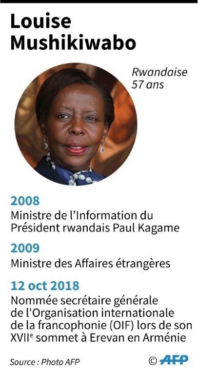 La ministre des Affaires étrangères du Rwanda, 57 ans, a été préférée à la sortante, la Canadienne Michaëlle Jean, pour diriger l'Organisation internationale de la Francophonie (OIF), malgré l'image controversée de son pays en termes de défense des droits de l'Homme.
