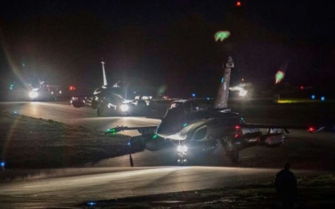Photo fournie par le service de presse de l'armée française d'avions Rafale se préparant à décoller depuis la base de Saint-Dizier, le 13 avril 2018 pour une mission en Syrie. Photo : AFP/VNA/CVN |