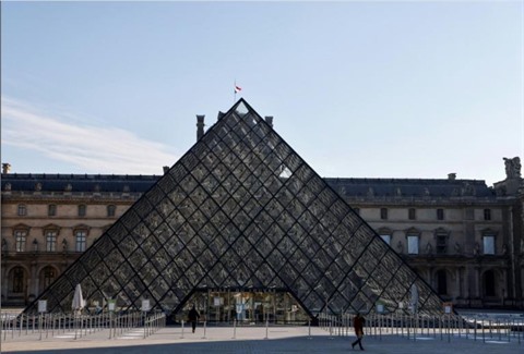 | Le musée du Louvre et sa pyramide, créée par l'artiste Ieok Ming Pei, privés de leurs visiteurs en raison de l'épidémie de coronavirus, à Paris, le 6 novembre 2020. |