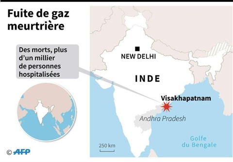 LG Polymers India se présente sur son site comme l'un des principaux producteurs de polystyrène et de polystyrène expansible du pays de 1,3 milliard d'habitants. La nature du gaz qui s'est échappé n'a pas été précisée dans l'immédiat. "Je prie pour la sécurité et le bien-être de tous à Visakhapatnam", a tweeté le Premier ministre indien Narendra Modi. Pour de nombreux Indiens, cette fuite réveille de sinistres souvenirs.