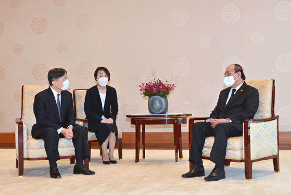 | Le président Nguyên Xuân Phuc (droite) et l'empereur japonais Naruhito. |