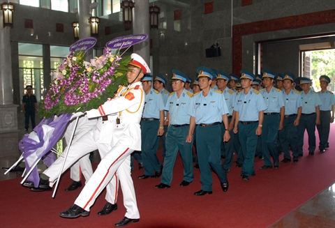 | Les funérailles des deux pilotes décédés lors d'opérations d’entraînement le 16 avril dans la zone maritime près de l’île de Phu Quy, province de Binh Thuân (Centre), tenues 3 mai à la Maison des funérailles de Hô Chi Minh-Ville. |
