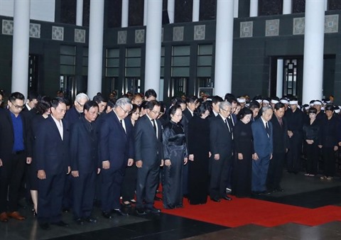 À Hanoï, c’est la famille de l’ancien président Lê Duc Anh qui a été la première à se recueillir devant son cercueil. Elle a été suivie par la délégation du comité central du Parti conduite par le Premier ministre Nguyên Xuân Phuc. Se sont succédées les délégations du gouvernement, de l’Assemblée nationale et de la présidence de la République, menées respectivement par le Premier ministre Nguyên Xuân Phuc, la présidente de l’Assemblée nationale Nguyên Thi Kim Ngân, la vice-présidente vietnamienne Dang Thi Ngoc Thinh.