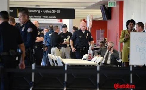 | Des policiers à l'aéroport de Los Angeles après la fusillade, le 1er novembre 2013. |