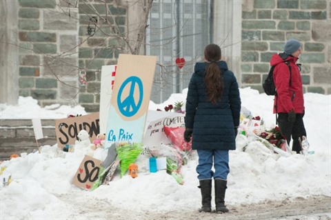 | Mémorial en hommage aux victimes du tueur de la mosquée de Québec, le 31 janvier 2017 dans la cité canadienne. |