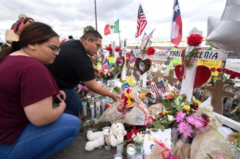 | Un mémorial érigé en souvenir des victimes de la fusillade d'El Paso, au Texas, photographié le 6 août 2019. |