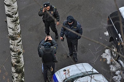| Des policiers sur les lieux de la fusillade, le 14 novembre en Russie. |