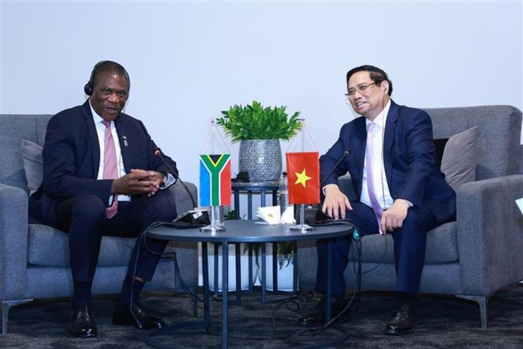 | Le Premier ministre Pham Minh Chinh (droite) rencontre à Johannesburg le vice-président sud-africain Paul Mashatile, le 21 novembre. |