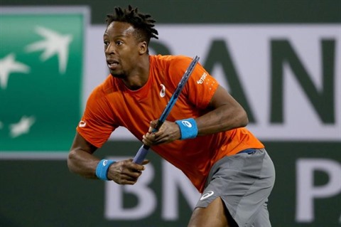 | Le Français Gaël Monfils lors du tournoi d'Indian Wells, le 13 mars 2019. |