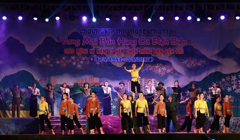 | Les artistes sur scène lors du Gala de musique célèbrant la victoire de Diên Biên Phu, le 6 mai dans la province de Diên Biên (Nord-Ouest). |