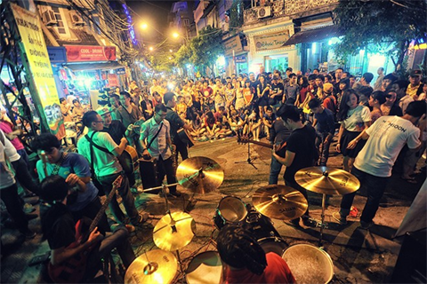 Les artistes de rue et amateurs se produisent dans six espaces aménagés dans les rues piétonnes du Vieux quartier. Les concerts ont lieu du vendredi au dimanche soir, à partir de 20h30. Les musiques traditionnelles sont largement à l’honneur avec le ca trù (chant des courtisanes), le xâm (chant des aveugles), le trông quân (chant et danse avec tambourines) et le châu van (chant des chamans), aux temples Bach Ma et Quan Dê (rue Hàng Buôm) et Huong Tuong (rue Ma Mây). Pour ceux qui préfèrent la musique contemporaine, rendez-vous aux carrefours des rues Dào Duy Tu, Hàng Buôm, Ta Hiên et Luong Ngoc Quyên.