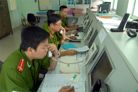 | Une permanence de la Police de Hô Chi Minh-Ville pour recevoir 24 heures sur 24 les appels de la population. Photo : Manh Linh/VNA/CVN |