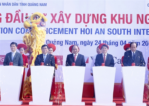 | Le PM Nguyên Xuân Phuc (centre) à la cérémonie de mise en chantier du complexe touristique de Nam Hôi An, à Quang Nam (Centre), le 24 avril. |