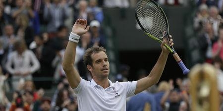 | Richard Gasquet s'est qualifié pour les demi-finales de Wimbledon en battant le Suisse Wawrinka, le 8 juillet à Londres. |