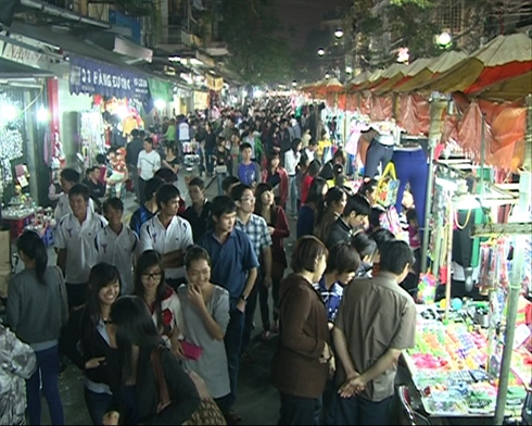 Depuis 2004, un quartier piétonnier se tient tous les week-ends dans les rues Hàng Dào, Hàng Ngang, Hàng Duong et Dông Xuân. Son extension est nécessaire. Désormais, il englobe d’autres hauts lieux de la vie nocturne de l’ancien quartier que sont Hàng Buôm, Hàng Giây, Luong Ngoc Quyên, Ma Mây, Dào Duy Tu, Ta Hiên. Ce quartier piétonnier tient les trois derniers soirs de la semaine : vendredi, samedi et dimanche. Le Service des transports et des communications de Hanoi a proposé également d’inclure les alentours du lac Hoàn Kiêm (Lê Lai, Lê Thái Tô, Lê Thach, Dinh Tiên Hoàng, Hàng Khay, une partie de la rue Tràng Tiên allant de Hàng Khay à Ngô Quyên). La vente ambulante y est interdite.