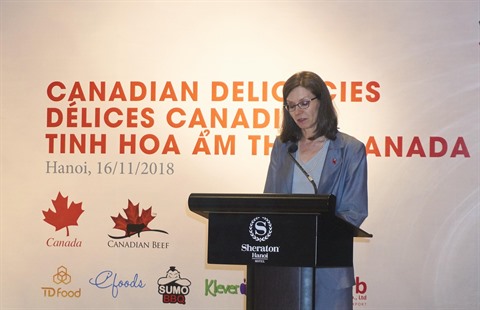 | L’ambassadrice du Canada au Vietnam, Deborah Paul, au gala "Délices canadiens", le 16 novembre à l’hôtel Sheraton de Hanoï. |