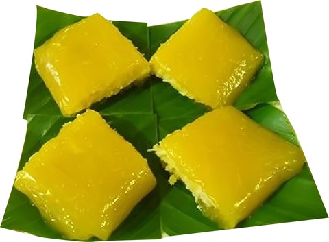 Bien que chaque famille ait sa propre recette qui donne une saveur unique au gâteau, nous pouvions identifier de nombreux ingrédients familiers tels que la farine de riz gluant, les haricots verts, les papayes séchées, les noix de coco et les feuilles de bananier.