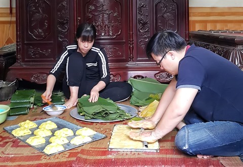 | Faire des gâteaux de Phu Thê est un long processus. |