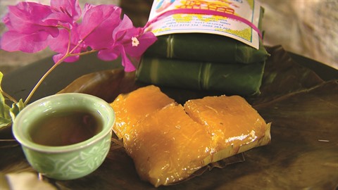 Quiconque passe par le village de Dinh Bang se doit de déguster un gâteau phu thê. Ces petits morceaux jaune doré enveloppés dans des feuilles de bananiers apporteront une expérience gustative exceptionnelle. "Dès la première impression, on est touché par la texture douce, à la fois gluante et ferme. À ma connaissance, cette friandise symbolise la relation passionnelle des mariés. C’est peut-être pour cette raison qu’en le savourant, on pourra ressentir ce sentiment précieux", a remarqué Thanh Tâm.